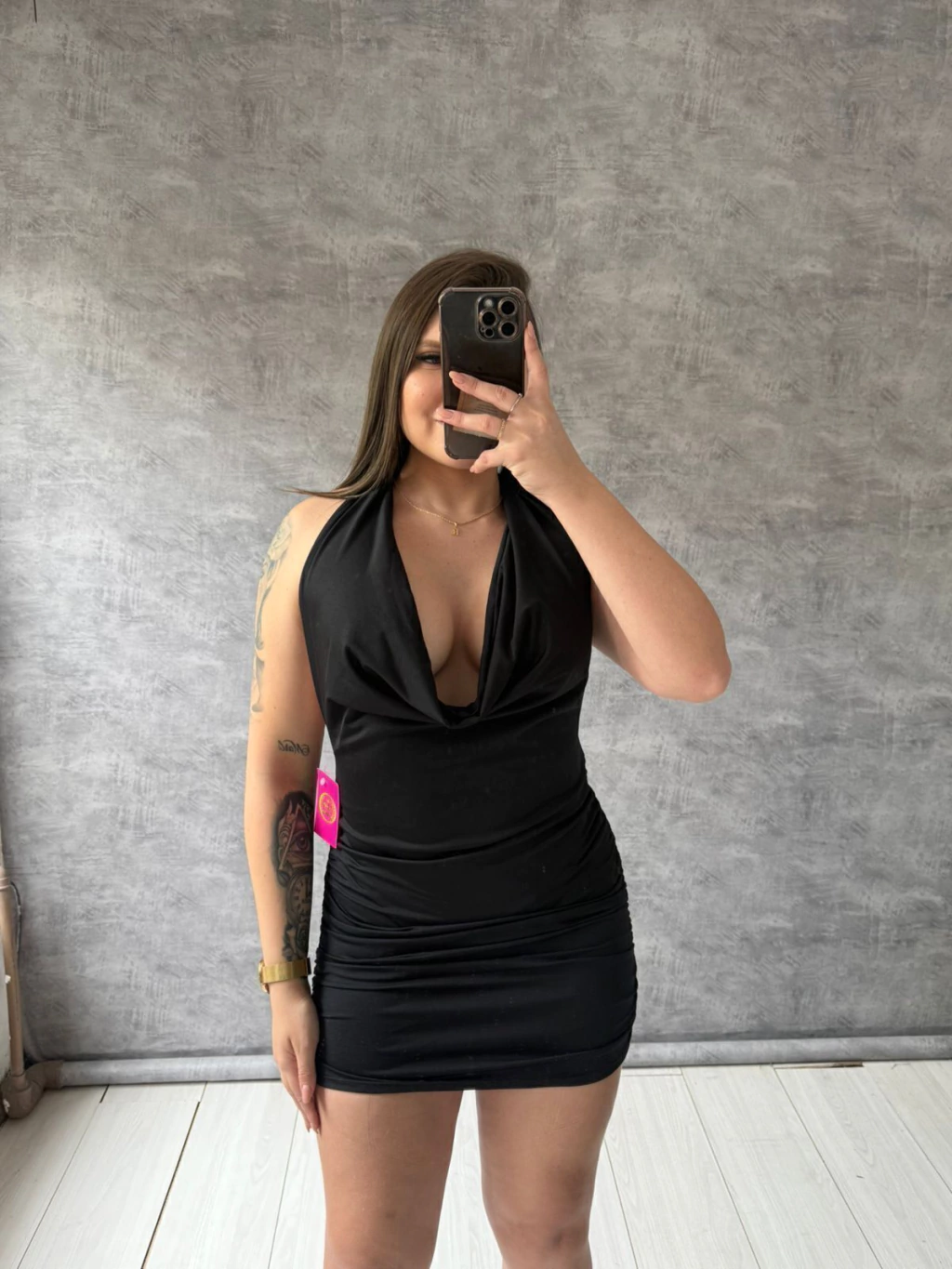 Este vestido curto traz um design moderno e sensual, com a elegante costas nuas e uma charmosa amarração no pescoço que valoriza o colo e o decote. Seu corte ajustado realça a silhueta feminina, proporcionando um visual sofisticado e ao mesmo tempo despojado.